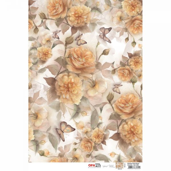 Paper OPAPEL 2484 Flor Rosas e Pássaro 30×45 cm